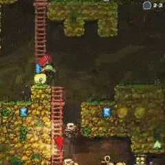 Disadvantages, however, cause the Boomerang to be risky to use in the Ice Caves against UFOs. This is due to its tendency to get lost when thrown, or launched away by an explosion. Worst case causes a crashing UFO to return towards you. It is also a risky item to use for setting off Powder Boxes as the explosion will not prevent the boomerang from trying to return to the user as normal, but will cause it to inflict a point of damage if it hits them, as if the Boomerang counts as debris from the explosion. Reliable weapon, use with caution. A noteworthy feature about the boomerang is that it is capable of catching gems and treasure along it’s thrown path, and bringing them back to you. This is useful for catching treasure and gems across a chasm for example.