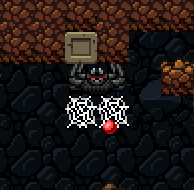 If you can lure a giant spider into a one-tile-high passage, it is relatively easy to kill it with the whip. There, its movement is more slow and predictable since it cannot jump, and it can be hit repeatedly with the backswing of the whip. Since each swing inflicts multiple hits, three or four swings will kill it. The challenger must, however, be careful not to let the spider catch up with them. In this picture, the spider cannot jump out of the left end of the passage, but the spelunker can, giving them a further advantage.