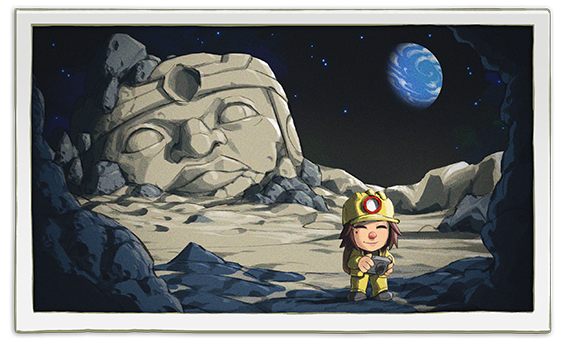 Guy Spelunky writes about where he's been between the events of Spelunky HD and Spelunky 2 in his old Journal, intended to be read by his daughter. He writes that he ventured to the Moon in search of answers to the dreams he's been having, and discovered another massive cave on it. He later apologizes to Ana for leaving her back on Earth and insists to her that they're having fun and that she should take her time.