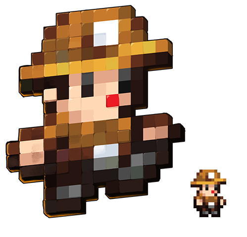 A version of Guy Spelunky from a parallel universe made of large, flat blocks of colors.