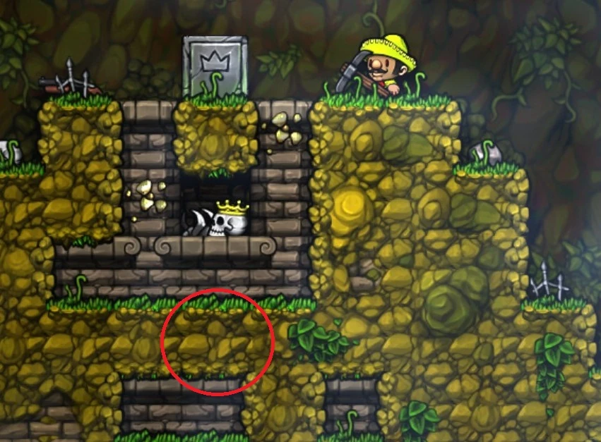 The Haunted Castle is a special level hidden within the Jungle. The entrance to this level may appear during a Restless Dead Level Feeling, and is found underneath the burial site of a skeleton with a gold crown.