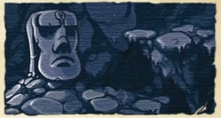 The Ice Caves consist of large open caverns with snowy or icy ledges (which are slippery unless wearing Spike Shoes), and unlike in previous areas, there is no bottom floor to each level. Instead the bottom of each level is an obviously deadly fall into the abyss. This can make it difficult or impossible to reach the exit if you end up at the bottom on the wrong side of the level, making the compass unusually valuable here. Gold and Jewels may be found in the walls if the walls are destroyed with either bombs or a mattock. One of the levels will randomly contain the Moai statue, whose interior can only be accessed by dying on that level while in possession of the Ankh purchased at the Black Market or by teleporting in with the teleporter (note that it is much safer and reliable to teleport inside the statue vertically rather than from the side). Teleporting inside the Moai statue will not allow you to enter the City of Gold as the player will get a diamond gem when teleporting inside, and to acquire the Hedjet, they still need to suicide.
