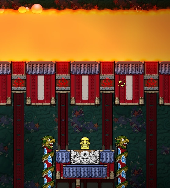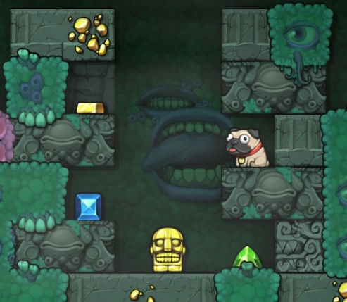 Although one of the easier Idol traps to beat, a player should plan their moves carefully after the Idol is taken, as the lava can spread into locations that the player does not want it to be, such as in the way of loot or even blocking the path to the exit door. Luckily, even one block in the way is enough to stop the lava, but Conveyors may complicate the situation further.