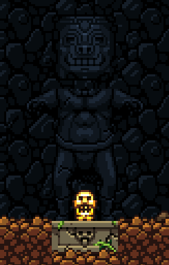 In the Mines, Golden Idols are found placed on a stone altar underneath a gigantic stone carving.