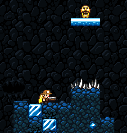 Golden Idols found in the Ice Caves are placed high up on platforms of thin ice suspended above a platform covered in spikes.