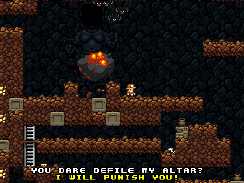 - The player character (the Spelunker or the Tunnel Man) will leave a corpse when killed, but obviously these can't be used for sacrificing - unless the player is playing as a Damsel, sacrificing Spelunker NPCs.