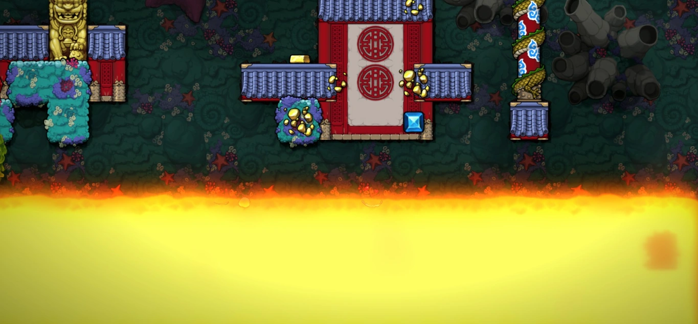Like water, lava will slowly be expunged if over a main exit door, but will not if over any other type of doorway. If a single instance of lava is not united with at least a single other one for a short time, it will remove itself. Lava can also be destroyed with the Freeze Ray, which will leave behind a destructible ice cube and sometimes a rock.