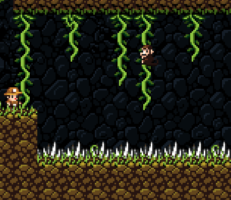 They may also throw objects they find on the ground which can cause damage if they hit you. The player may be put into harms way if he is stunned above a spike pit, or near other hazards such as Tiki Traps or enemies.