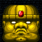 Upon entering the final level, the Spelunker sees a Hawkman leading a group of cavemen to worship the giant figure, which is encrusted with dirt and covered in vines from years of lying dormant. Upon sensing the intruder, the ancient totem awakens and rises into the air.