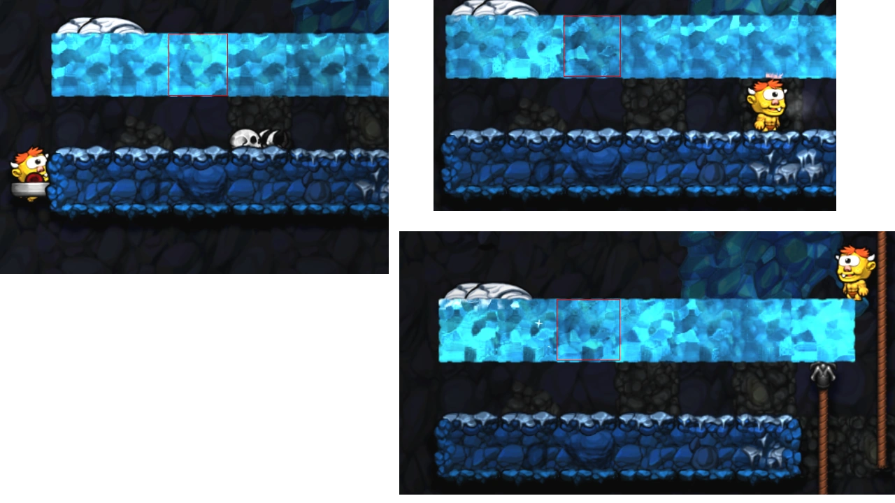 When idle, a Caveman roams around slowly, aimlessly wandering off ledges and hopping over obstacles.
