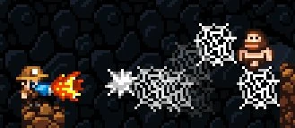 Webs can also be deployed to catch projectile items like arrows or the Mummy's Fly Swarm attack, but will not impede bullets fired from guns.