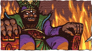 It is a large room with a one-tile-thick floor above a pool of lava underneath it. Other dangers in this room include Spike traps, Vampires, Jiang Shi and the unique enemies Ox Face and Horse Head, that will jump near the Spelunker as soon as the cutscene ends.